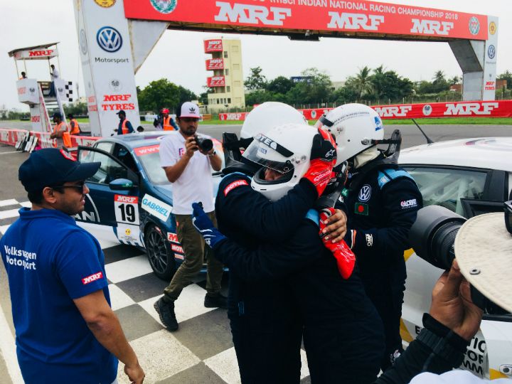 At the end of Race 1, Sirish Vissa, the head of Volkswagen Motorsport India, said, "Today's race was a pretty clean one with only a few ups and downs. We had two major crashes with cars getting terribly damaged yesterday. Our team worked hard into the night yesterday to have both cars up on the grid for the race today. The championship is closely contested at the moment and with five more races to go, it's anyone's titie at the moment."