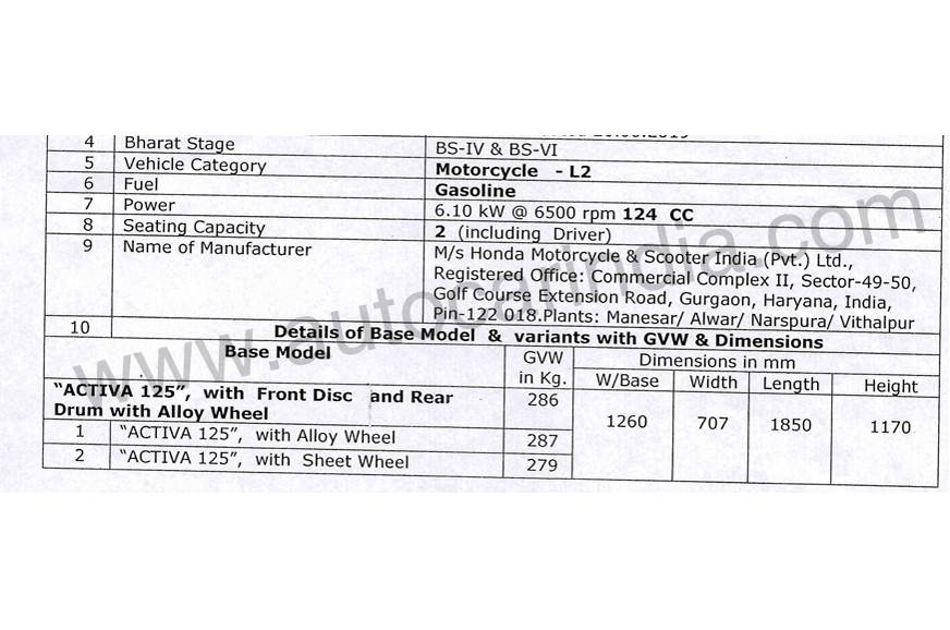 Honda is all set to launch the BS6-compliant Activa 125 in India on September 11, 2019, and while we wait for the price, we’ve got our hands on some of the scooter’s specifications. A leaked official document denotes the engine capacity, power figures as well as the dimensions of the new Honda Activa 125.