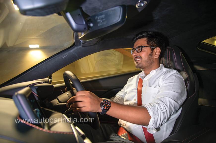 The sky’s changing colour and we still have some daylight photography to do, so it’s onwards to the Gurugram-Faridabad highway. The road surface isn’t as good as what we’ve been on so far, but what’s nice is that the Aston doesn’t feel unduly firm. There is some compliance, so owners won’t need a chiropractor on speed dial. In the soft morning light, I also take a good look at the interior. There’s a certain charm to it and the craftsmanship that’s gone into making it is all but evident. Okay, the squared-out steering is unusual, but it really hasn’t been a bother to use all night long.