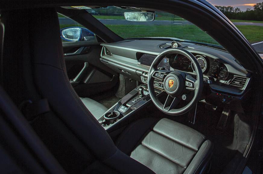 The driving position is just so right; it’s set low, as it should be, but even someone as short as me can find a good compromise, because forward visibility is really good. You get the typical 911 view forward, of the two headlamp bulges rising out of the bonnet, helping you place the car perfectly.