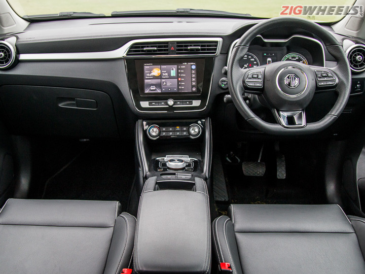 If you've seen any of our reviews of the Hector, the only yardstick we've had for Morris Garages is the fit and finish of its interiors. Thankfully, the ZS EV is setting a new mark for the brand with refreshingly upmarket materials and styling. This is, in no small thanks to influence from Volkswagen, whose inspiration is evident in the design of the AC vents and the steering wheel. There's also plenty of soft-touch plastics and a healthy dose of leather-wrapped bits, both on the dashboard and the central console.