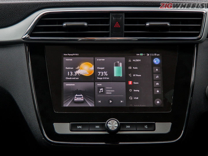 MG has gone back to a horizontal display for the ZS EV. This one comes with a new iSMART EV 2.0 operating system, which is nice and snappy to use and gets a better design to the interface. Some of the apps like the Gaana could still do with a more car-friendly interface. A few of the button areas are still too small to locate and use in a moving car. Like the system in the Hector, the display is nice and crisp and fairly lag free.