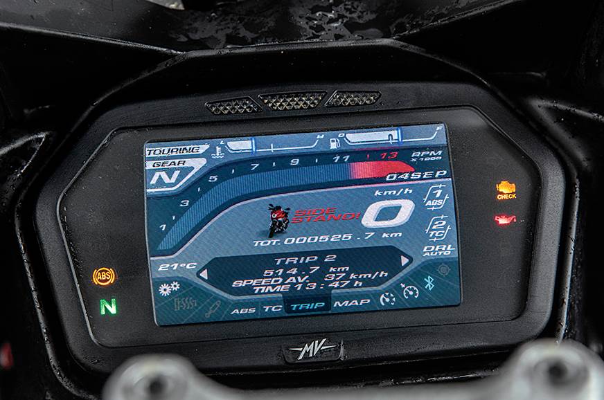 The engine’s wide spread of torque allows you to stick to highway speeds at relaxed RPMs and when you decide to turn up the wick, the motor is happy to oblige. It’s this dual nature that makes this MV suited to our riding conditions, and what’s also helpful in this regard is the Veloce’s clever suite of electronics.