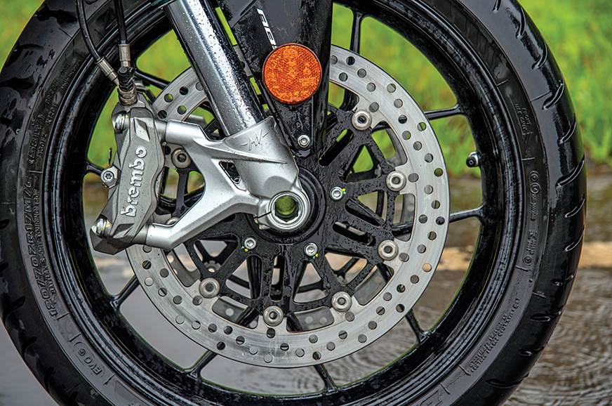 While I was wary about riding this expensive MV over the worst possible roads – a common phenomenon every monsoon – I was surprised to see how well the fully adjustable Marzocchi fork and the Sachs monoshock coped with the punishment. Although the low-speed ride is a tad firm, this is the first MV we’ve ever experienced that does a good job of tackling potholes, letting only the sharpest of bumps filter through. The dynamics remain uncompromised and this bike is such a joy to push hard in the corners.