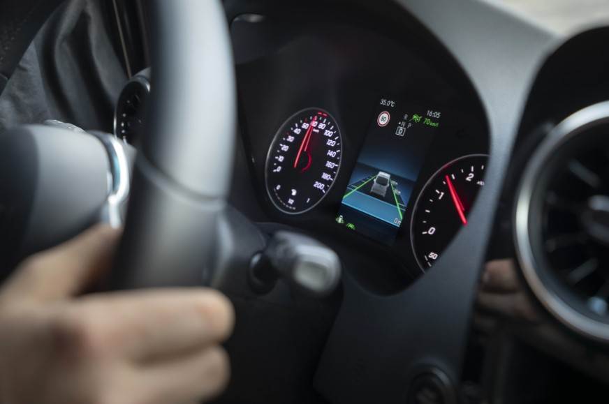 The Mercedes-Benz Distronic Plus is a cruise control system that automatically adapts the car’s set speed according to the vehicle ahead of it.