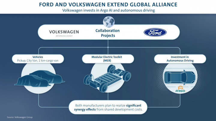 Aside from EV platform sharing, Ford and Volkswagen will work with Argo AI, an autonomous vehicle platform company, to develop autonomous vehicle technology and introduce it to their US and European models. Other than that, the two brands will also work on developing two commercial vans and a pick-up truck based on Ford Ranger. Likely to be called the VW Amarok, the pick-up truck is expected to go on sale by 2022.