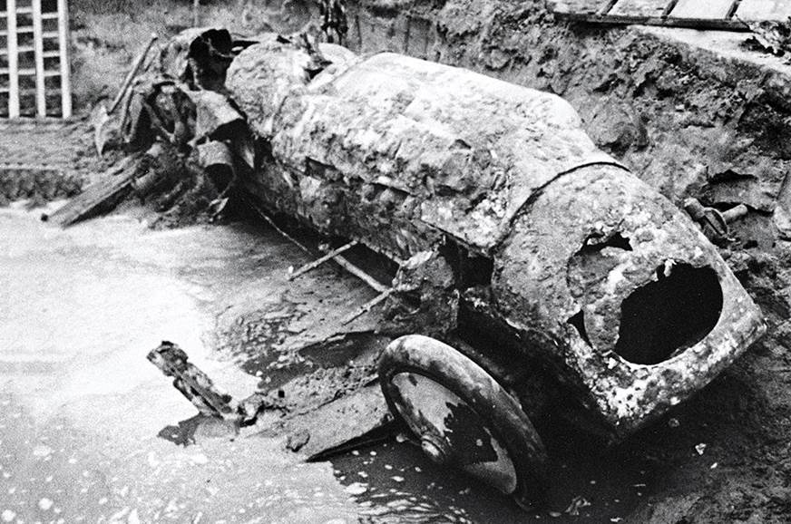 The story doesn’t end there. After an enquiry into Parry-Thomas’ accident revealed that the right rear wheel might have given way, Babs was buried at the sand dunes at the Pendine Sands, with its seats slashed and glass dials smashed out. But in the mid-1960s, Welsh restorer Owen Wyn Owen decided to find the burial site of the record-breaking race car and excavate it, with the aim to restore it and ensure it runs again. While there were a lot of naysayers and with the authorities granting permission on the condition that a living relative of Parry-Thomas gives his or her approval to exhume the car, Owen finally excavated Babs in 1967.