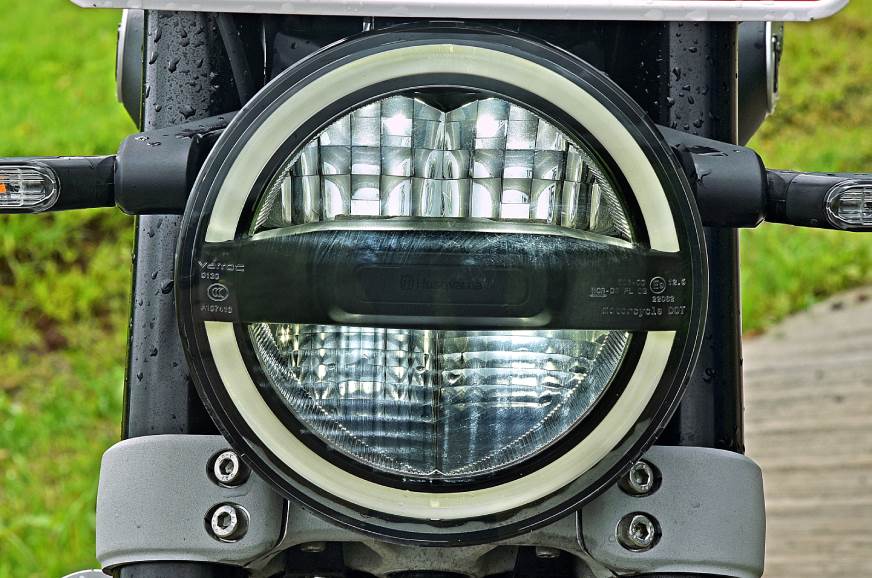 These little differences aside, both motorcycles look equally stunning and some bits – like the bronze fuel cap with the embossed Husqvarna crown logo, the neon yellow stitching on the seats, the single pod LCD cluster, and the classic round headlamps with integrated DRLs – enhance their appeal manyfold.