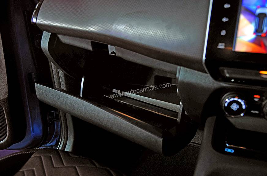 The big surprise is space at the back. Ingress is easy, thanks to a relatively large door aperture, there’s more than ample head- and knee-room for six-footers to sit in comfort and the seat itself is well padded, offering good thigh support. A near-flat floor and fairly wide cabin also mean sitting three abreast won’t be a struggle. In case you don't have to share the space with a third occupant, you can always fold down the centre armrest, which comes with a nifty smartphone holder. Adjustable rear headrests, rear air-con vents and a 12V charging socket are other amenities at the back.