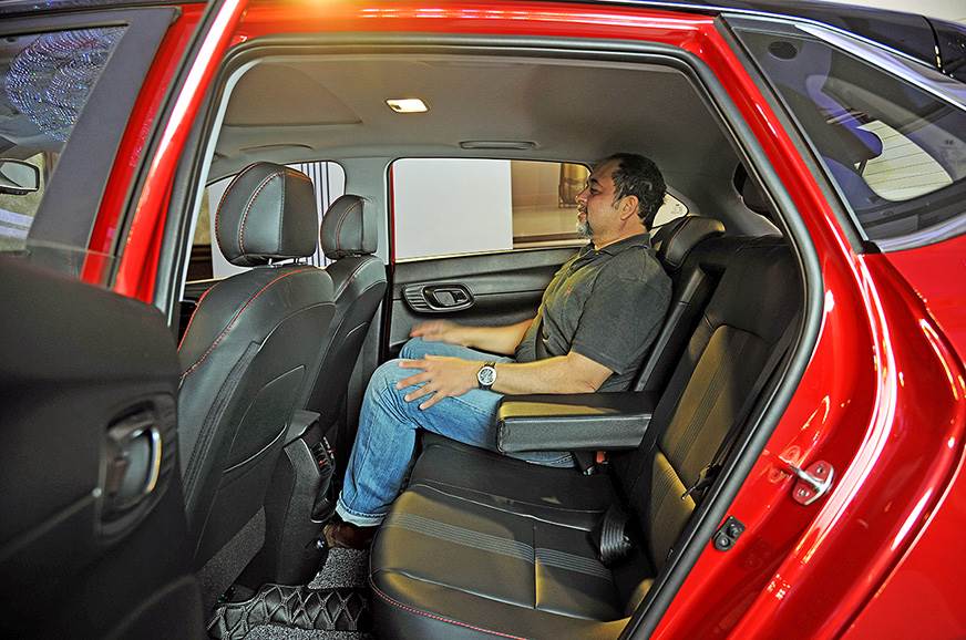 With the longest wheelbase in the class and generous width, the cabin is very spacious. Hyundai claims rear legroom is the best in class, there’s 40mm more shoulder room for occupants than on the earlier i20, meaning seating three abreast at the rear is marginally better, and with the scooped-out roof, headroom at the rear is pretty generous too. The bench is placed a bit low, but the seat supports your thighs nicely, the backrest is perfectly reclined, and the seat is both, supportive and soft enough to be comfortable. You even get an elbow rest, and there's a USB socket in the back. While the door pocket at the rear isn't too large, it can still hold a bottle and some odds and ends.