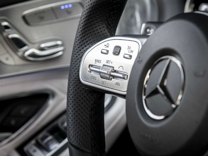 The steering wheel gets touch-sensitive buttons and the metallic-scrollers from the flagship S-Class sedan.