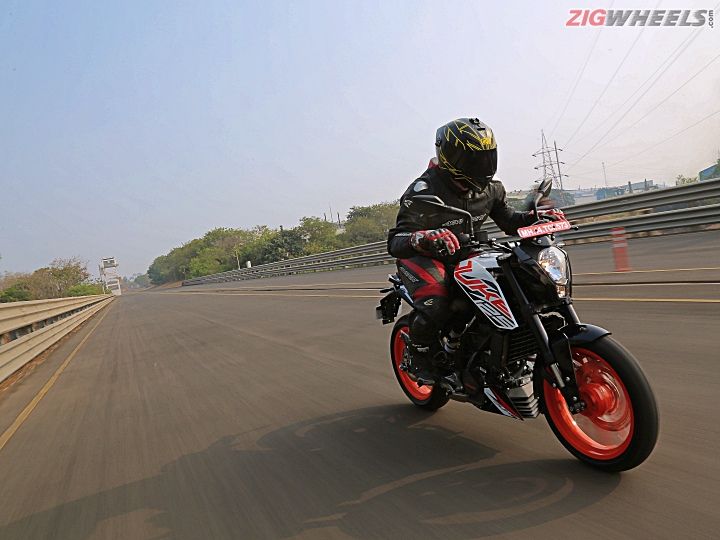 The India-spec 125 Duke gets the same engine as the last-generation European 125 Duke. Hence, the ride-by-wire throttle has been given a miss here, like the current-gen international 125 Duke. In our review, we found the power delivery here to be quite linear and easy to manage. You do get a minor surge in torque at around the 7000rpm mark, and the bike pulls cleanly till its redline of a little over 10,000rpm. But don’t expect to win any drag races on this soon, unless you’re going up against bikes in the same cubic capacity bracket.