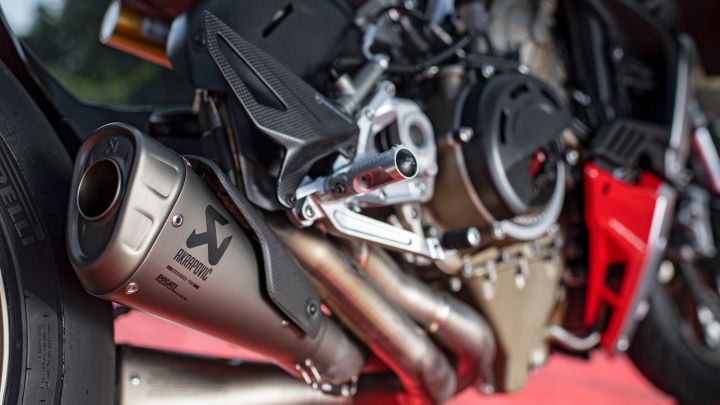 The 1103cc liquid-cooled V4 Desmosedici Stradale engine churns out 211PS and 123Nm, making this one of the most powerful production naked motorcycles in the world. It also uses a counter-rotating crankshaft for increased agility and better handling. The engine is mated to a 6-speed gearbox that also gets a bi-directional quickshifter as standard.
