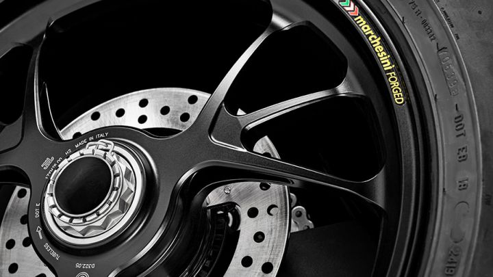 Also exclusive to the S variant are Marchesini forged aluminium wheels which reduce weight as well as rotational inertia, making the bike more agile light-steering.