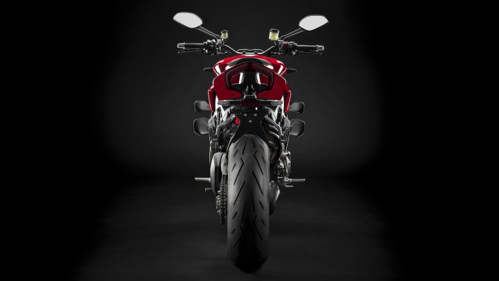 The tail section on the Streetfighter looks very similar to that on the Panigale V4, with the two vents cut out underneath the pillion seat. With no exhauts exits protruding on the side of the motorcycle, the Streetfighter has a very slim profile. It also gets a 200-section rear tyre.