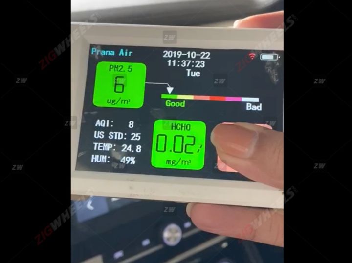 The above video also demonstrates the function of the air filter. The person sitting in the electric vehicle measures the air quality with a device that reveals the air quality is at acceptable levels. But as soon as he steps out of the ZS EV, you can see the air quality becoming worse as revealed by the device.