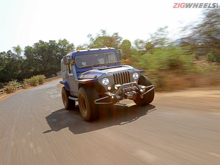 It looks like a cross between a Humvee and an FJ40 Land Cruiser. Giant wheels and unbelievable wheel articulation and suspension travel. It was equipped with a winch, twin exhausts, a snorkel intake, and an off-roading jack. We know from SEMA why we'll never see this at a dealership, but we'll never know why Mahindra didn't offer the kit on the stock Thar.