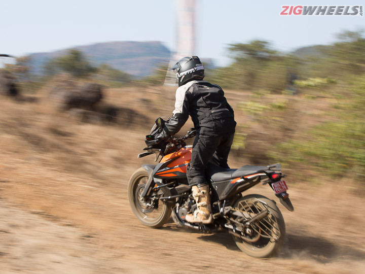 One of the basic necessities of off-road riding is the ability to have a good chunk of bottom-end torque. You would want something that can get you going slowly without having to struggle constantly with the clutch. And a linear torque curve, that is a given. The last thing you want is a sudden rush of power on loose surfaces. Given that there is no change in engine tune from the 390 Duke, the 390 Adventure becomes a handful when you are hitting your nearby tight trails. You have to be constantly slipping and working the clutch while diligently modulating the throttle so as to keep you going.